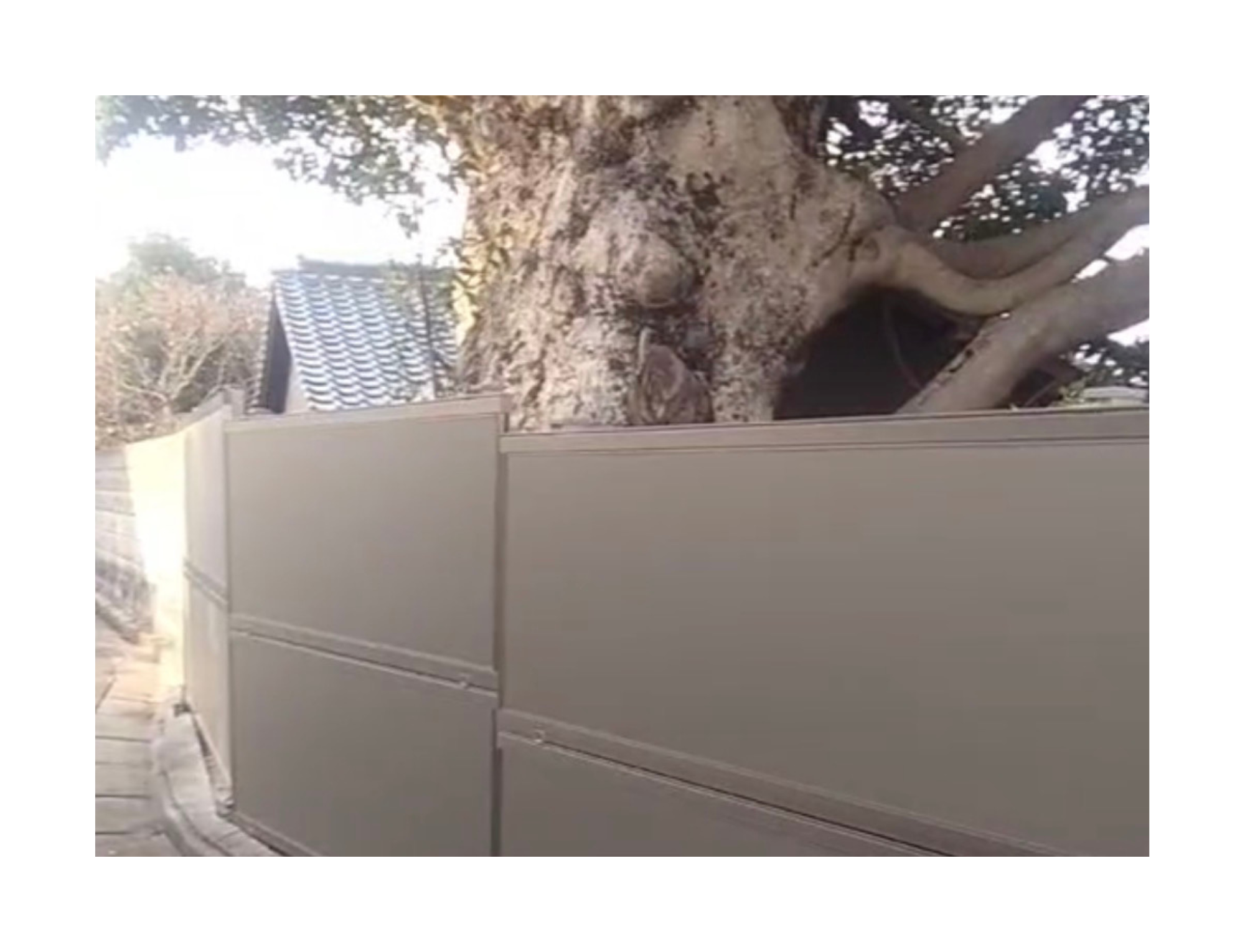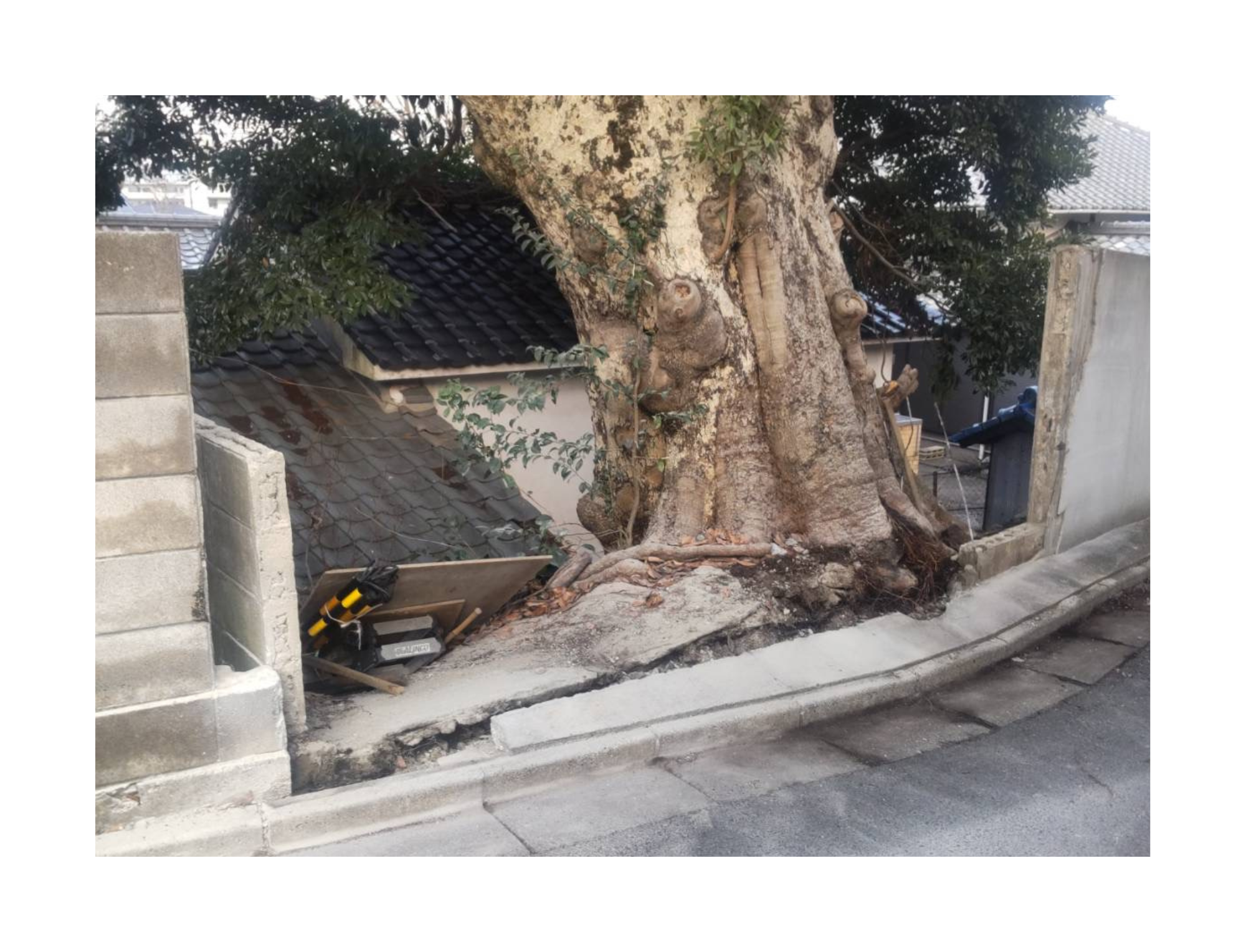 樹齢100年を超える立派な木の根が外構の壁を押し、壁が今にも倒れそうな状態になっていました。